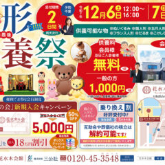 2024/12/01家族葬の花水木会館(株式会社三公社)では下記日程で令和6年の最後の人形供養祭を開催いたします。 ご自宅の押し入れなどでお役目を終えたお人形やぬいぐるみなどがございましたら、この機会に供養しましょう。 また、同時開催で便利でお得な会員制度「花水木の会」新規入会キャンペーンを開催いたします。他社会員や積立をされている方もご入会可能ですので、ぜひこの機会にご検討ください。 ご不明な点などがございましたら…